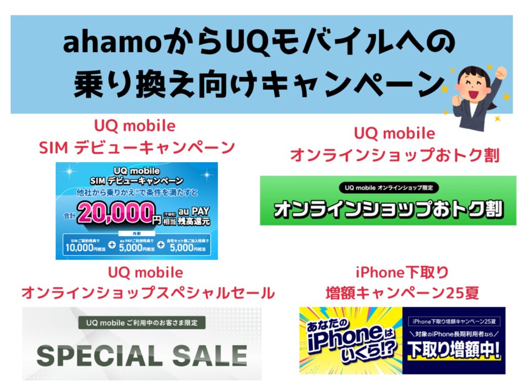 - ahamoからUQモバイルへの乗り換え向けキャンペーン