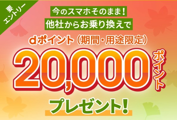 他社からahamoに乗り換えると20,000ポイント(2万円相当)がもらえる「ahamoの20,000ポイントプレゼントキャンペーン」が現在実施中!