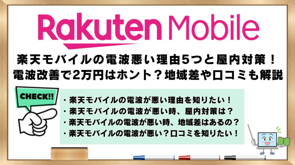 楽天モバイルの電波悪い理由5つと屋内対策!電波改善で2万円はホント?地域差や口コミも解説