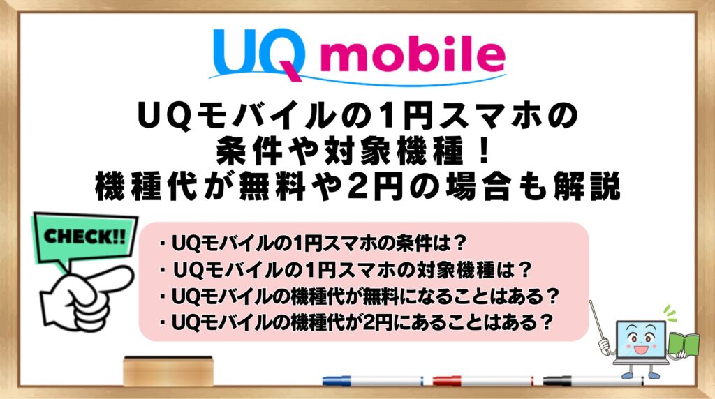 UQモバイルの1円スマホの条件や対象機種!機種代が無料や2円の場合も解説