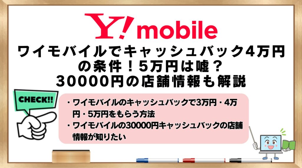 【2026年4月最新】ワイモバイルでキャッシュバック4万円の条件!5万円は嘘?30000円の店舗情報も解説
