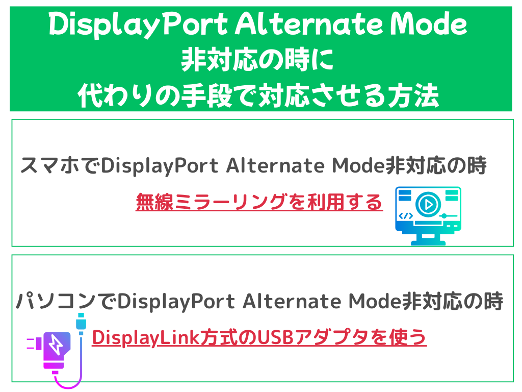 DisplayPort Alternate Mode非対応の時に代わりの手段で対応させる方法|スマホ・PC