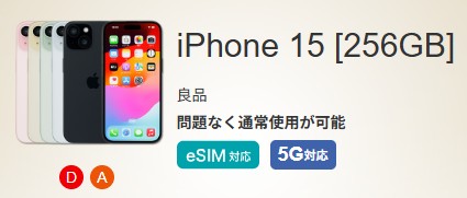 | iPhone 15 256GB | 良品 | 69,800円 | 月額2,909円 | できるだけ新しい世代を選びたい人向け |