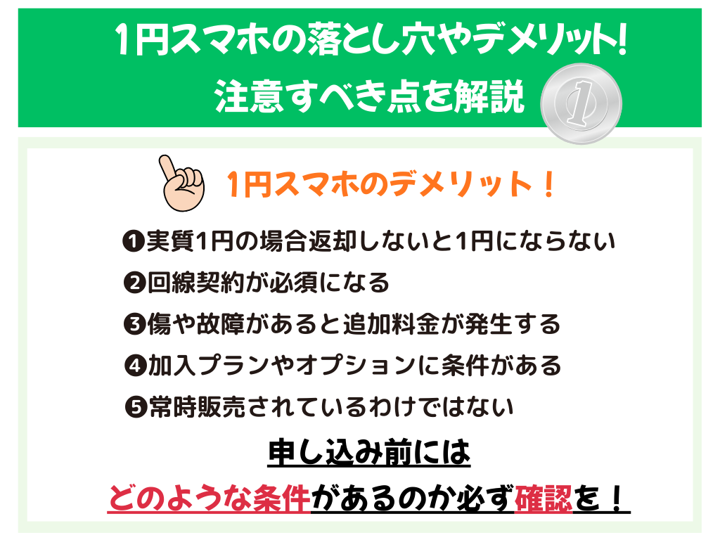 1円スマホの見落としがちな注意点や、デメリットが気になりますよね。