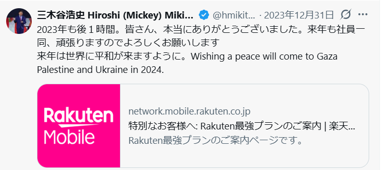 三木谷キャンペーンは、2023年12月に三木谷浩史氏のX(旧Twitter)で、特別なお客様向けページへの紹介リンクとして公開され、広く知られるようになりました。