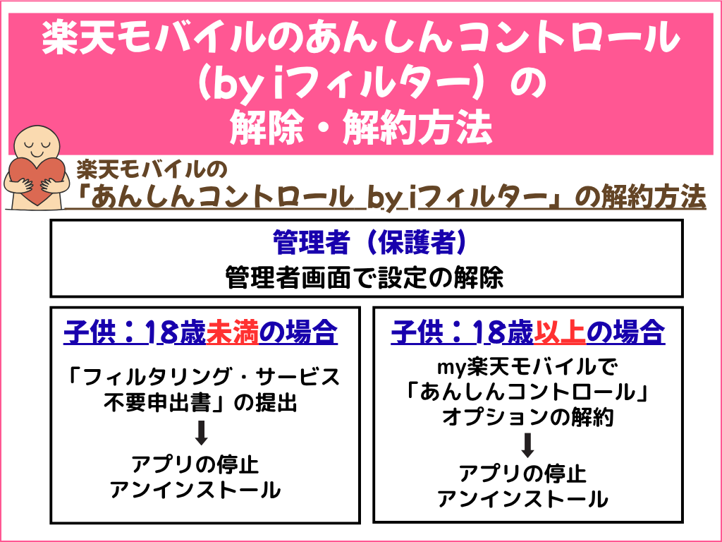 楽天モバイルの「あんしんコントロール by iフィルター」の解約は、契約者の年齢により内容が異なります。