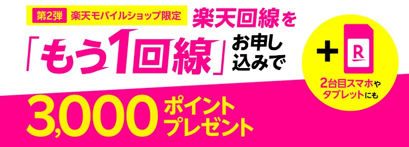 もう1回線キャンペーン|3,000ポイント・2回線目新規契約・楽天モバイルショップからの申し込み限定