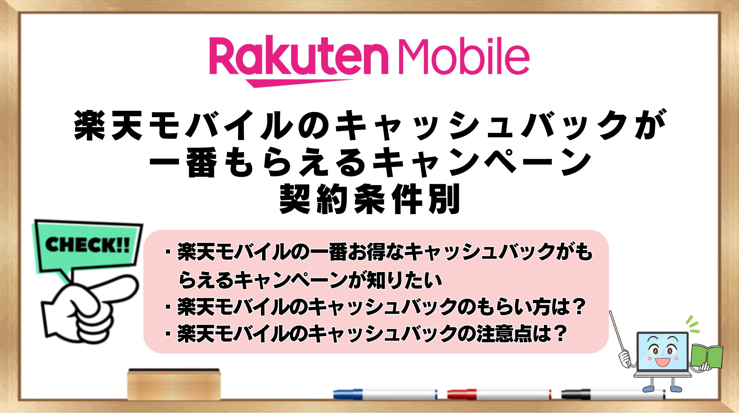 楽天モバイルのキャッシュバック、せっかくなら一番お得にもらいたいですよね。
