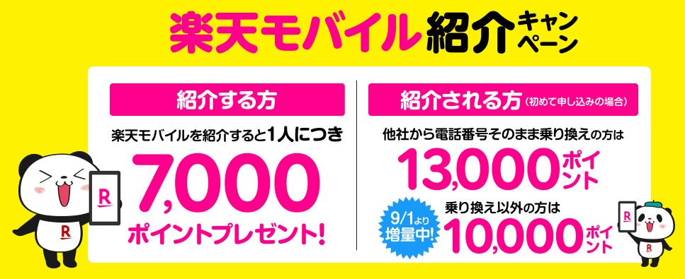 ただし、「楽天モバイル紹介キャンペーン」など一部キャンペーンとは併用不可の場合があります。
