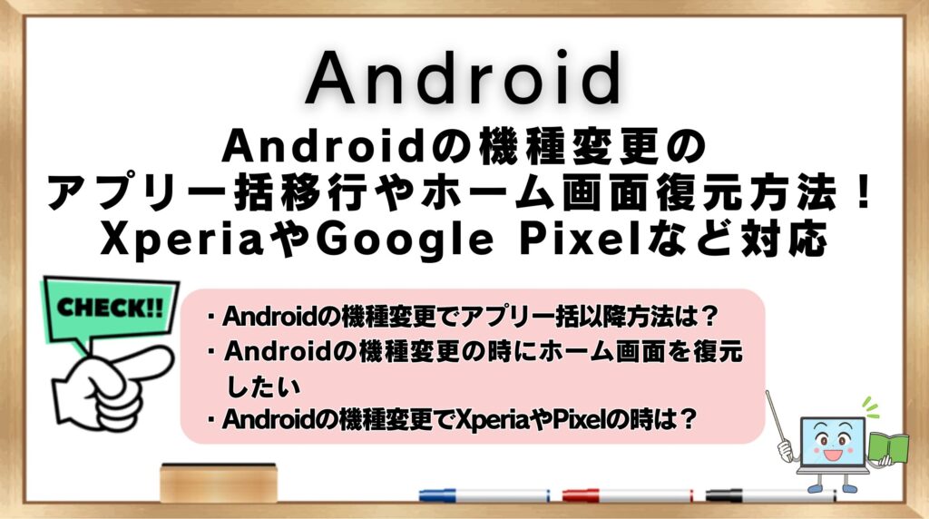 「Androidの機種変更のアプリの一括移行の方法は?」 「Androidの機種変更のホーム... -