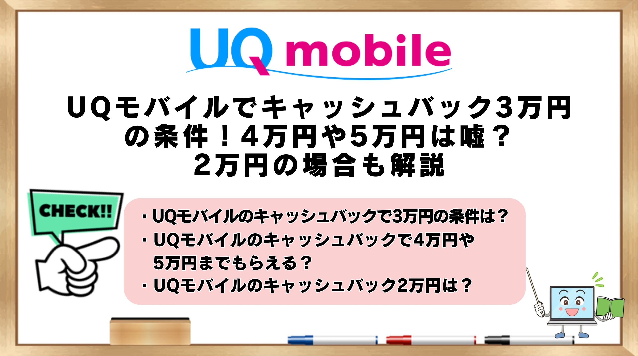 「UQモバイルでキャッシュバック3万円の条件を知りたい」
