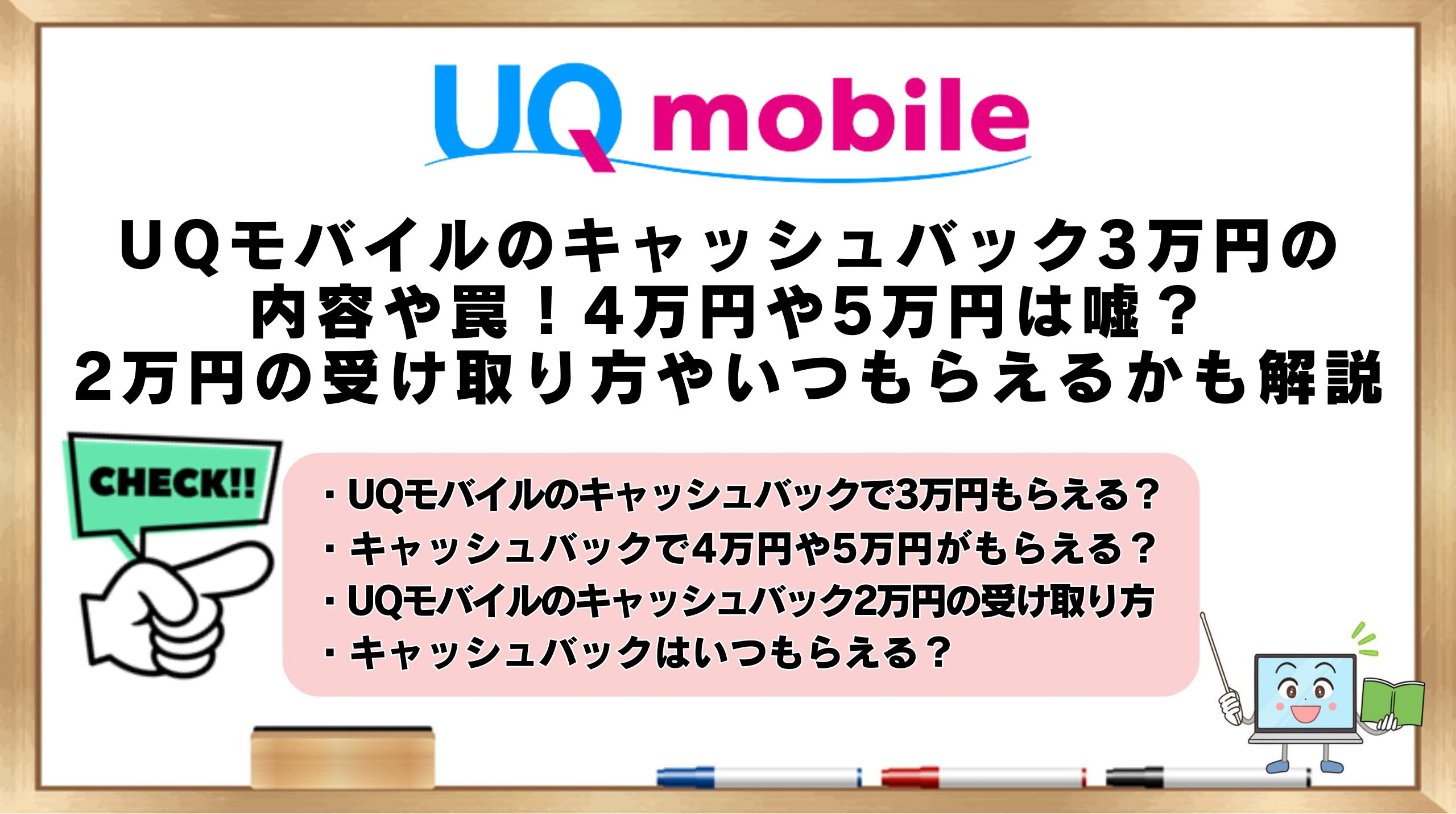 【2026年3月】UQモバイルのキャッシュバック3万円の内容や罠!4万円や5万円は嘘?2万円の受け取り方やいつもらえるかも解説