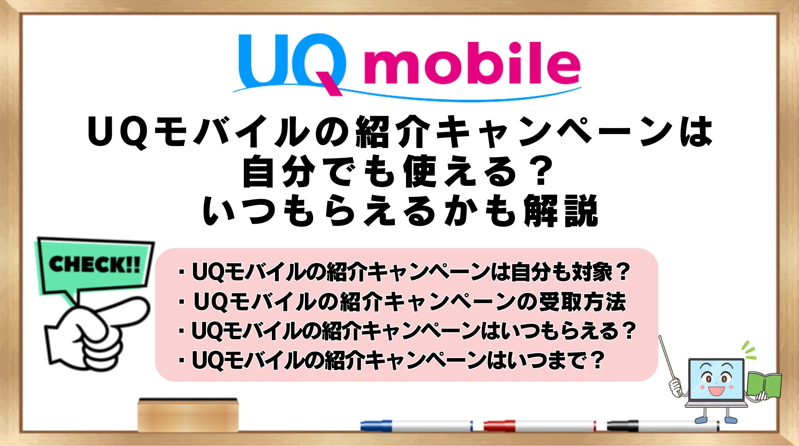 そこでこの章では、UQモバイルの紹介キャンペーンで紹介された人が対象になるのかと、特典の受け取り方や付与時期をわかりやすく整理していきます。