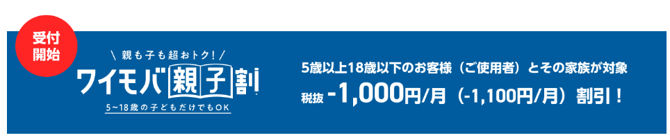 5〜18歳の方とその家族が対象│ワイモバ親子割